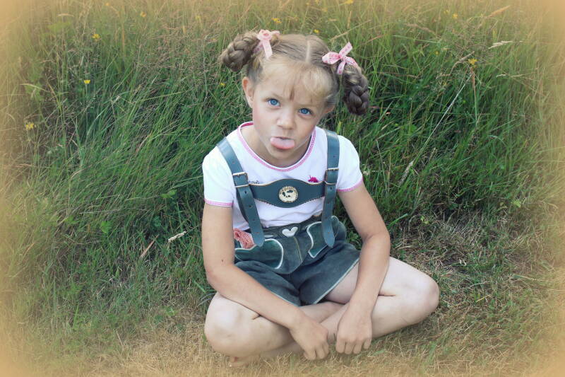 We have here: our Grammy's baby dress, our Mama's lederhosen, our great-aunt Barbara's lederhosen, and Cecily is wearing Grammy's 8th grade graduation dress dating back to 1960. For Trysten and Tate, in lack of a full outfit for them, we got old hats and styled the outfits around them. Trysten has an old bowler hat from our friend, Coreen.